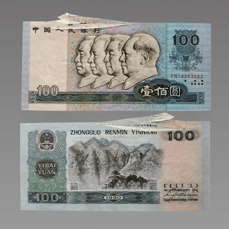 1990年版的100元是第四套人民币中的一员,它的正面图案是我国开国的四大功臣。这也是我国唯一一款以四个伟人头像为主要背景图案的人民币。此枚1990年版人民币,属于非常明显的错币,经过有关专家鉴赏后确定,这张钱币属于中国人民银行1990年出版发行的人民币,错版人民币的收藏有着极其巨大的升值空间,会给收藏爱好者带来意想不到的惊喜。