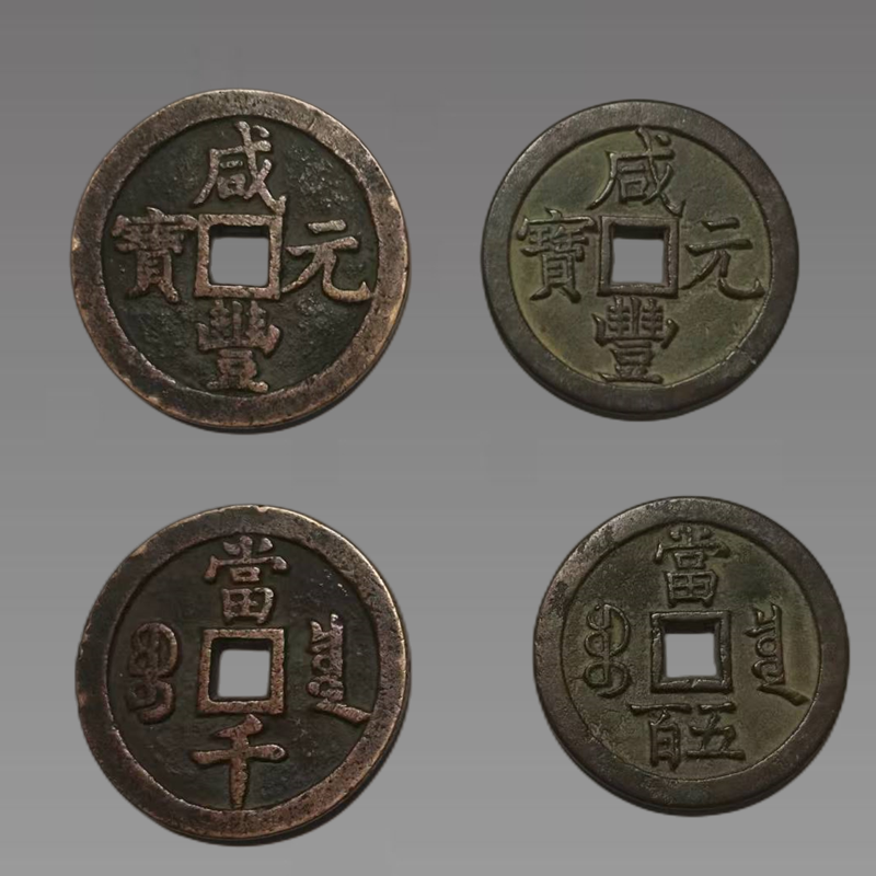 咸丰朝宝泉局所铸钱咸丰元宝有"当百"、"当二百"、"当三百"、"当五百"、"当千"等五种面值。当时采用了铜铁并铸的形式。