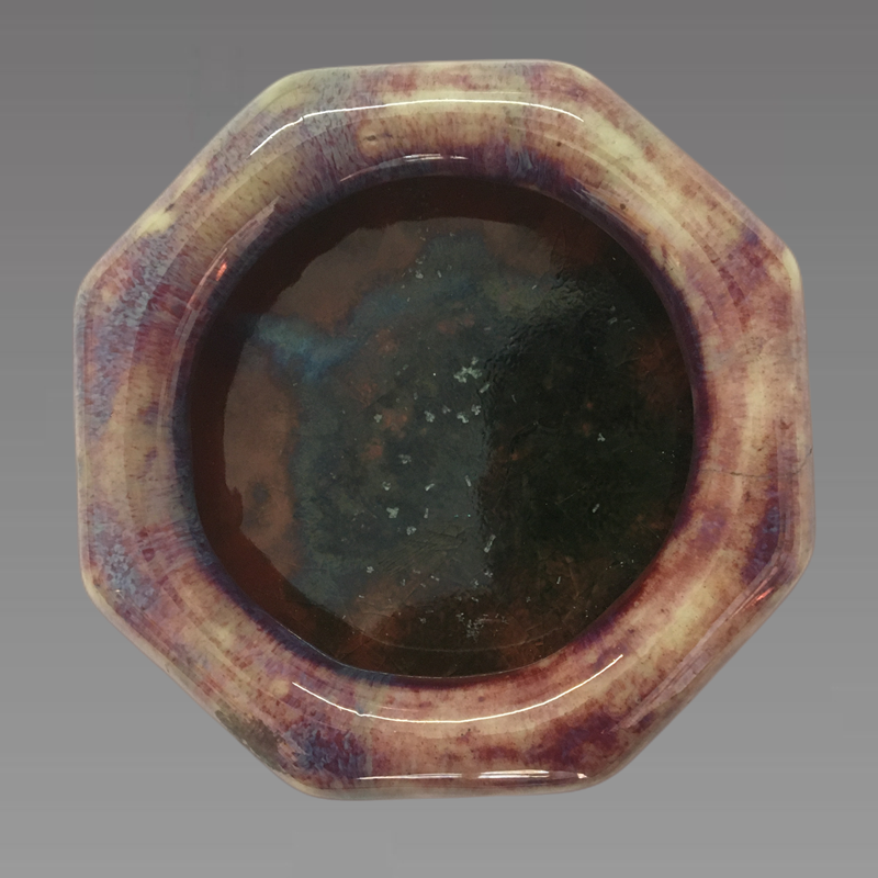 炉钧釉原本便是仿钧釉器,但没有钧釉色彩那种浓烈的大开大合,而是如小泉柳溪一般,细腻缠绵!炉钧色调丰富,几乎月白、葱翠、钧红、朱砂红等诸色皆备。由于使用了熔块釉,所以光泽性强,外表华美、艳丽。