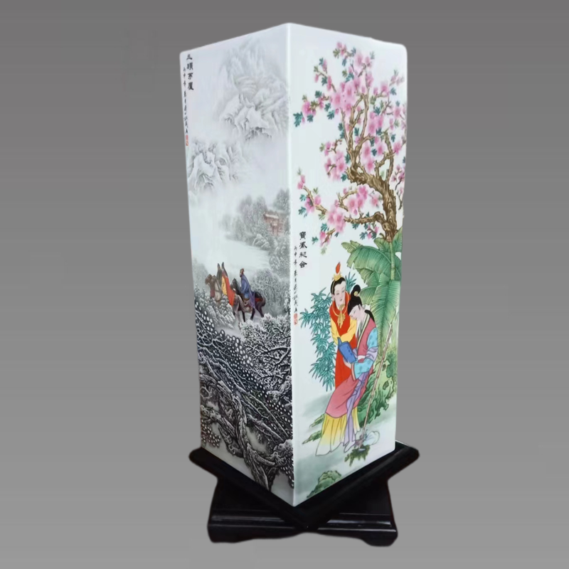 张松茂·徐亚凤首度共绘四大名著粉彩瓷,集雪景、人物、花鸟等两位大师最具价值的题材 于一器。《四大名著》四方尊集题材价值、大师价值、粉彩价值于一器,具有一定的收藏价值和文化艺术收藏价值。