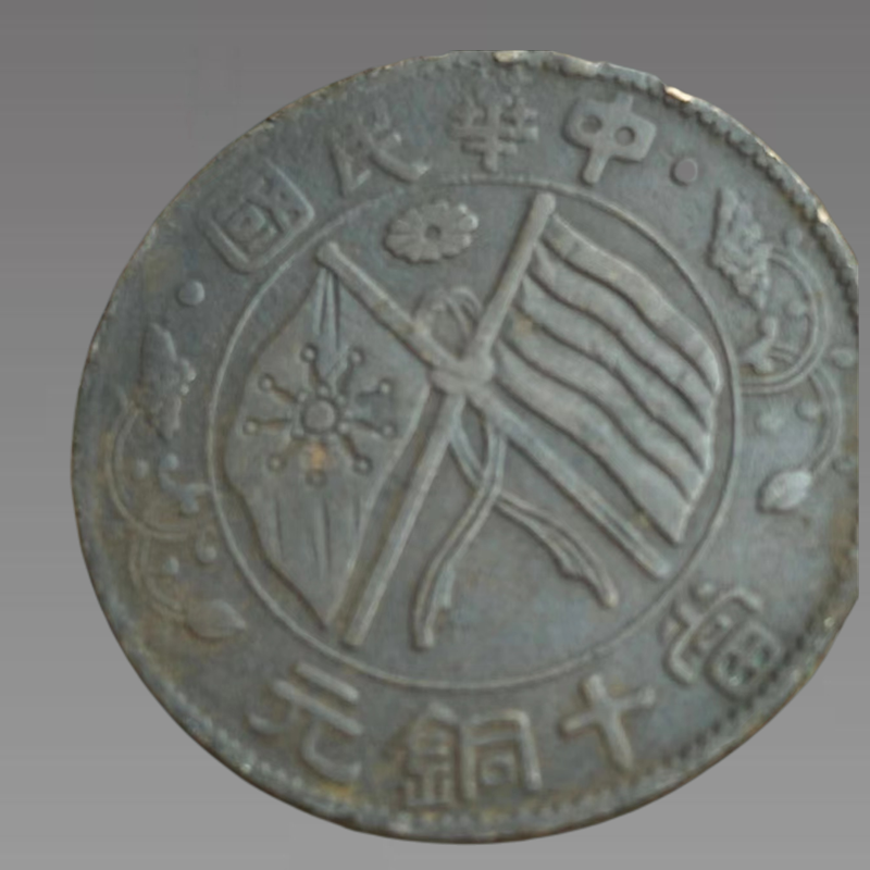虽然民国时期的钱币种类很多,但像这种正面刻着“当十铜元”几个大字,印着“中华民国”双面旌旗的全真铜元,在今天的收藏品市场上也是凤毛麟角。