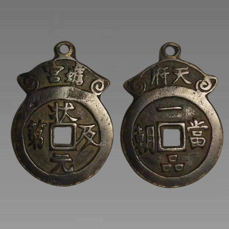 十年寒窗无人问,一举成名天下知。在封建社会,读书人都把参加科举考试作为跻身仕途的唯一途径,状元及第(中举)成为文人的唯一祈求。一朝状元郎,看尽长安花。状元成为当时社会最为荣耀和显赫的代名词。既然如此显贵,民俗钱币必有其一席,而且是精彩纷呈的一席。