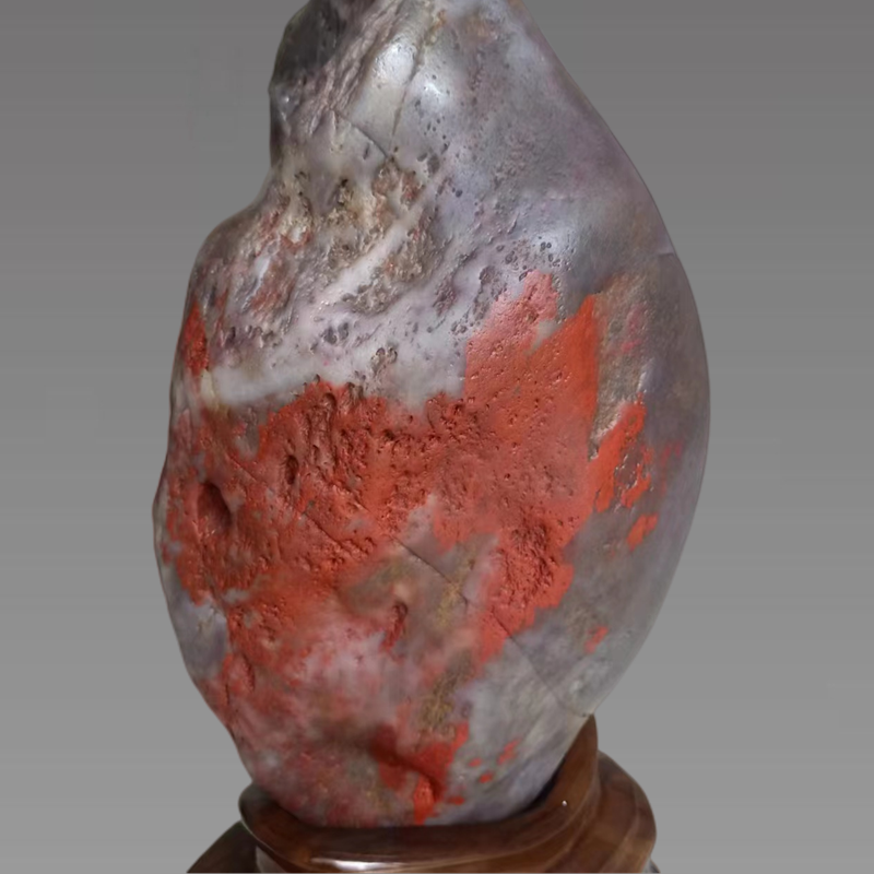 鸡血石没有固定的形状,叫块石状,它的色状有块血、条血、梅花血、浮云血。
