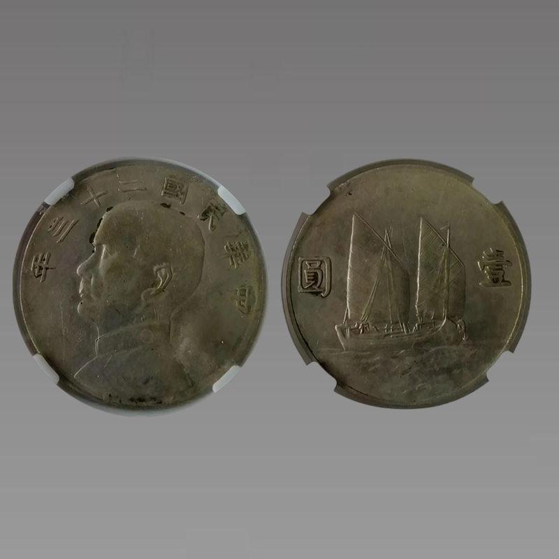 中华民国二十三年、壹圆银币背面有帆船纹饰,故又称“船洋”,是中国近代十大名品之一。民国时期,南京政府发行的“船洋”银币。“船洋”一经发行,便广受民众欢迎,逐渐取代了市面上流通的各种“龙洋”、外国银币,与“袁大头”、“开国纪念币”一起。直到一九三五年国民党政府实行法币政策禁止流通为止。