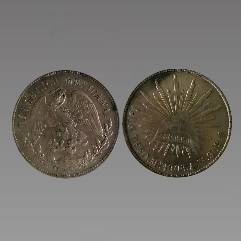 墨西哥银圆,又叫做"墨银"或"鹰洋",后讹为"英洋"。是指1821年墨西哥独立后使用的新铸币,它是从1823年开始铸造的。鹰洋大体分为两种,1897年以前的花边鹰洋和 1898年以后的直边鹰洋。晚清民国年间,外国银元输入中国者,属墨西哥鹰洋最多。据清朝宣统二年(1910)度支部调查统计,当时中国所流通的外国银元约有十一亿枚,其中有三分之一是墨西哥鹰洋。