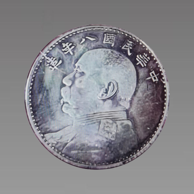 八年版中的普通版,其图案文字与一般"袁大头"无大差别,铸量较大。另外有一些把"年"字中的一点写成一竖或"7"字形,但铸量较少。