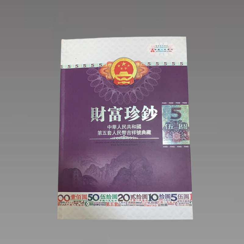 《财富珍钞》第五套人民币吉祥号珍藏册,册内精选第五套人民币吉祥号 10枚是第五套人民币收藏中的具有特色的藏品。随着第五套人民币吉祥号收藏热的升温,本册的价值将日渐显现。该册设计新颖、设计精美是个人收藏及馈赠之佳品
