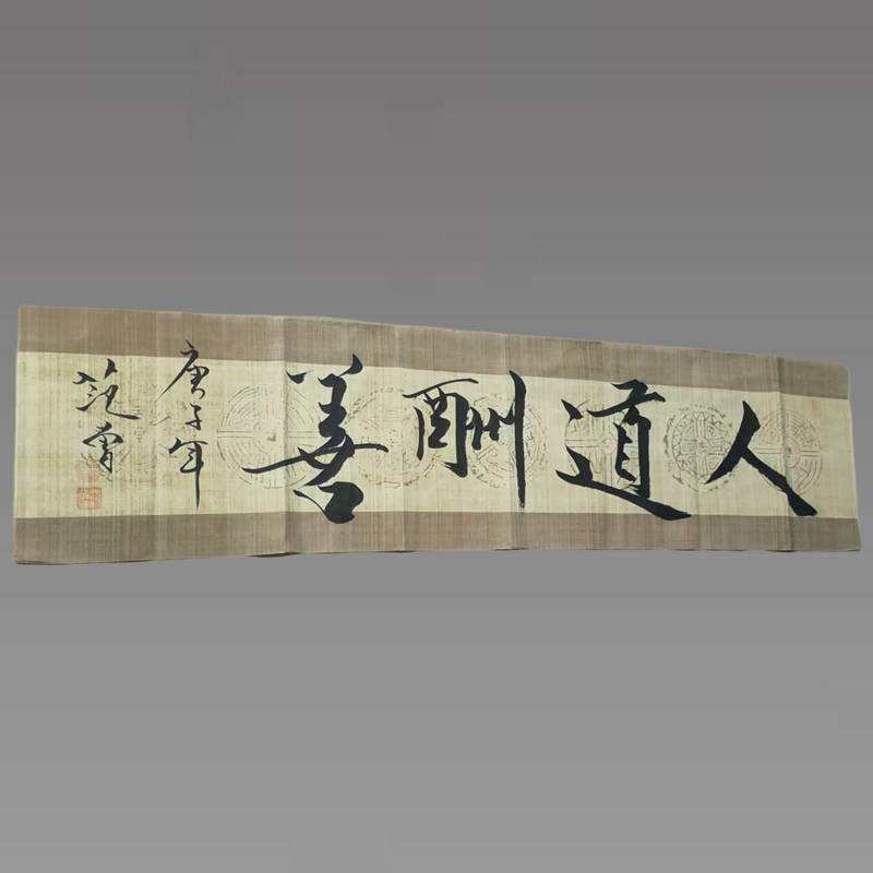 “人道酬善”:出自《周易》中的卦辞《大象》:“天行健,君子以自强不息;地势坤,君子以厚德载物,天(即自然)的运动刚强劲健,相应于此,君子应刚毅坚卓,愤发图强;大地的气势厚实和顺,君子应增厚美德,容载万物。释义:为人善良那么社会就会对你有所回报。