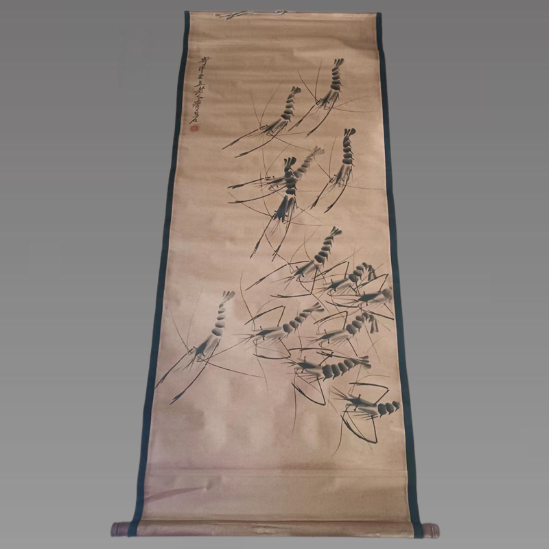齐白石从小生活在水塘边,常钓虾玩;青年时开始画虾;40岁后临摹过徐渭、李复堂等明清画家画的虾;63岁时齐白石画虾已很相似,但还不够"活",便在碗里养了几只长臂虾,置于画案,每日观察,画虾之法也因此而变,虾成为齐白石代表性的艺术符号之一。