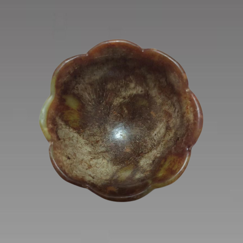碗的整体器型和纹饰来看,风格古朴不失典雅,刻板而不失生动,是不可多得的玉艺术品,器身上的莲花瓣纹理极为优美,浅浮雕手法层次分明,线条看似简单,但粗中有细主次分明,流畅而生动;深浅适度的刀法把莲花瓣分为八瓣刻画得栩栩如生,呈现出自然奔放、热情活泼的艺术效果。其艺术精髓和设计理念彰显古人智慧之精华。