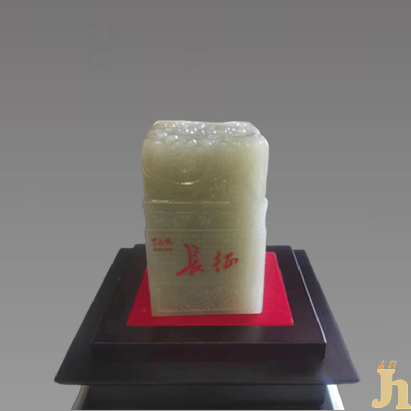 纪念中国工农红军长征胜利八十周年,铭记中华民族伟大复兴的光辉历程,玉玺采用上等白玉、纯手工雕刻完成。毛主席曾说过“长征精神永留存”,值此纪念长征80周年之际,以一方可以永世留存的《中华魂-长征国玺》来铭记这一精神,让后人得以瞻仰,其厚重的历史价值、文化价值、收藏价值无可估量。