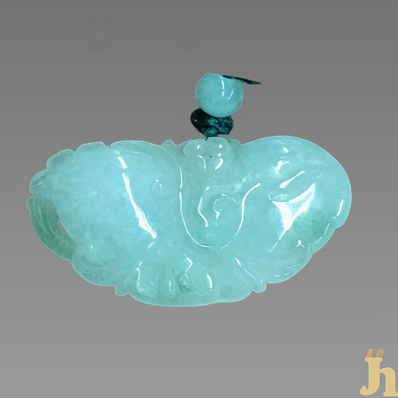 此件翡翠挂件艺术手法多变精湛,设计的纹饰线条如行云流水般流畅下,翡翠料质地上乘,润泽细腻,品相完美,俏色运用合理恰当。工艺精细,刀刀下去如有神来执笔,整体和谐完整,透露出此件藏品的不凡!具有一定的收藏价值和文化艺术欣赏价值!