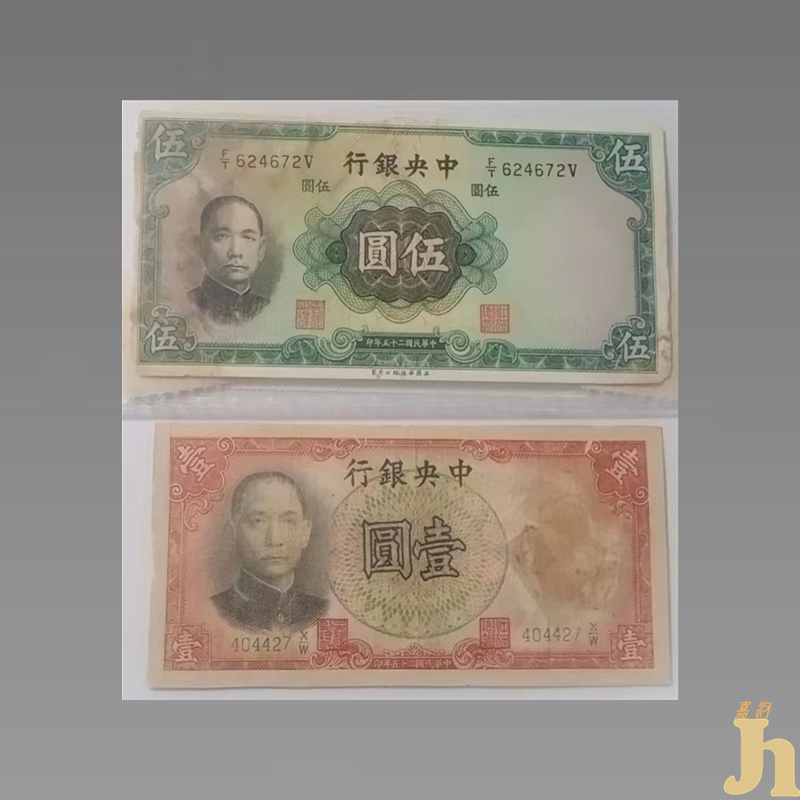 民国“中央银行”纸币一组(伍圆,壹圆)
