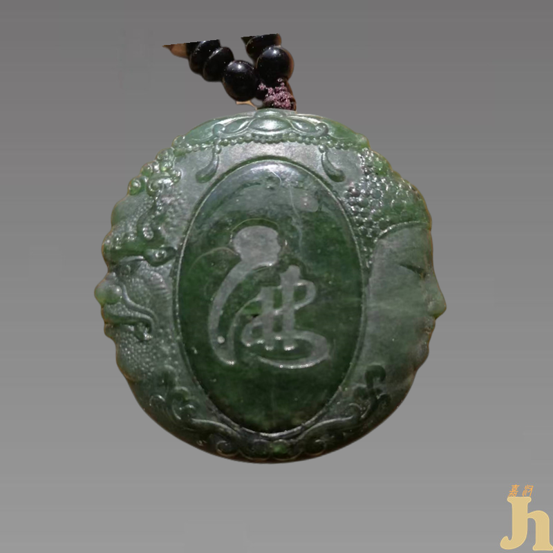 “一念之间”佛魔碧玉吊坠,一面雕刻成纯净、和善的佛面庞,另一边则描绘出恶魔狰狞可怖、烈火燃烧之态,左右半脸大小相同、比例一致,面部正中的分界雕刻“菩萨”纹饰,普度众生,自然高端,另一面艺术体的“佛”字,体现正义的重要性!真正做到神佛一体,让人赏来既不因魔之恶相而生怖,也不因佛之完美而觉假,给人一种对立统一的奇妙观感。和田碧玉历来有"五德"之说,即坚韧的质地、温润的光泽、绚丽的色泽、致密而透明的组织、舒扬致远的声音,无怪乎国人对和田碧玉如此偏爱。此件“一念之间”魔佛碧玉吊坠,玉质温润典雅,各类纹饰雕刻栩栩如生,雕刻技艺成熟精湛,浑然天成之感!具有一定的收藏价值和文化艺术欣赏价值!