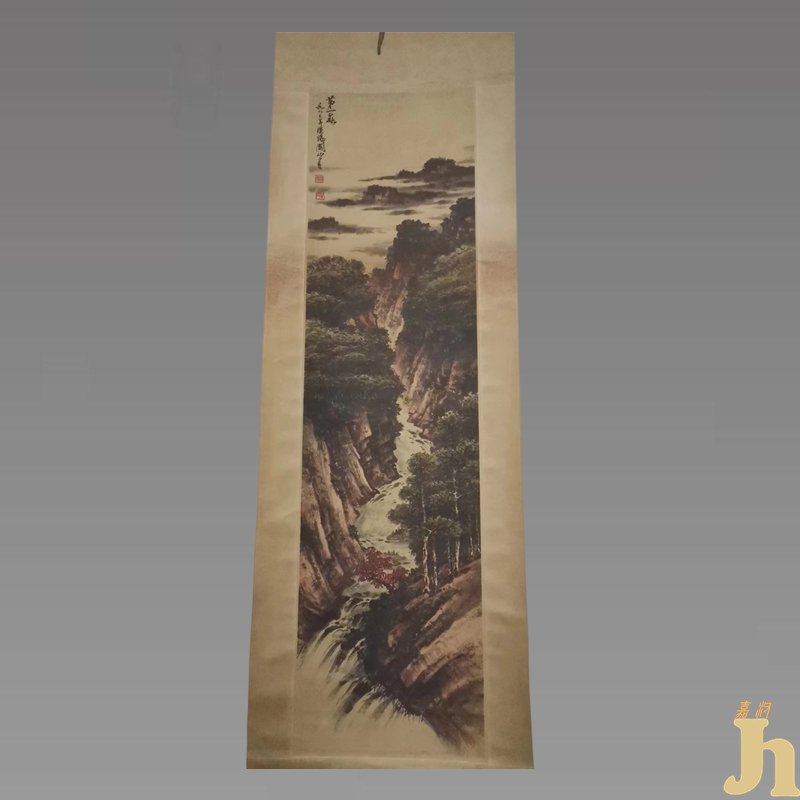 关山月在艺术上坚持岭南画派的革新主张,追求画面的时代感和生活气息。他的山水画立意高远,境界恢宏;他的山水画,枝干如铁,繁花似火,雄浑厚重,清丽秀逸。笔下的山水分外的细致,不仅仅是山川河流的自然景色,更是独特的人文意境!此山水图具有一定的收藏价值和文化艺术欣赏价值!