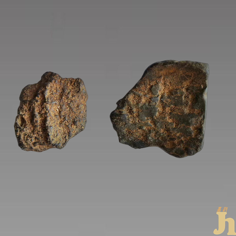此件藏品是两件精品天然石陨石,品相完美,这些石陨石,表面有些许的晶体非常漂亮而美丽,石陨石乃天外来物,可遇而不可求,极为稀有。此陨石表面融壳气印很明显,造型奇特,呈不规则形状,其色苍苍,其声铮铮,质感极佳,给人疑重大气的视觉美感。表面呈现铁的光泽,内含大量的稀有矿物质,融壳在阳光下闪耀着光芒,无论是重量还是历史和科研价值来说,此陨石都是非常稀有罕见,升值潜力和空间无限,是一块极佳的陨石珍品,具有一定的收藏价值和文化艺术欣赏价值!