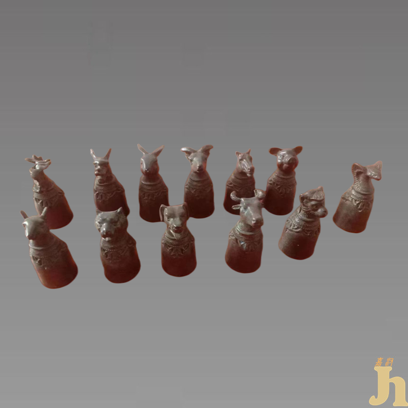 铜器文化,盛世则兴,败世则衰。它们包含着丰富的政治、社会、历史、文化内涵。铜器文化历经了漫长的历史阶段,每一段历史时期的铜器,都折射出了当时的人们不同的审美观、价值观和人生观。此件十二生肖兽首铜酒杯造型极其逼真,制造工艺精湛。