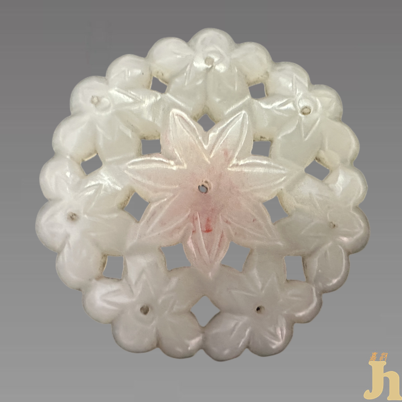 此和田玉镂空雕佩件,品相超群,艺术流畅,通透清亮,是难得的精品,中国历来把玉作为美的理想。形容人的相貌有“花容玉貌,如花似玉,亭亭玉立,珠圆玉润,即使世说新语中稽康喝醉了都要说如玉山倒。其在视觉上达到了大小结合,动静相宜,前后有序,虚实互衬,平衡有力的艺术效果,并采用了阴刻、透雕、浮雕、挖雕等工艺技术。整器脂感醇厚,质地细腻,沁色老道,做工精美,刻画讲究,抛光细致,整器浑然一体。具有一定的收藏价值和文化艺术欣赏价值!