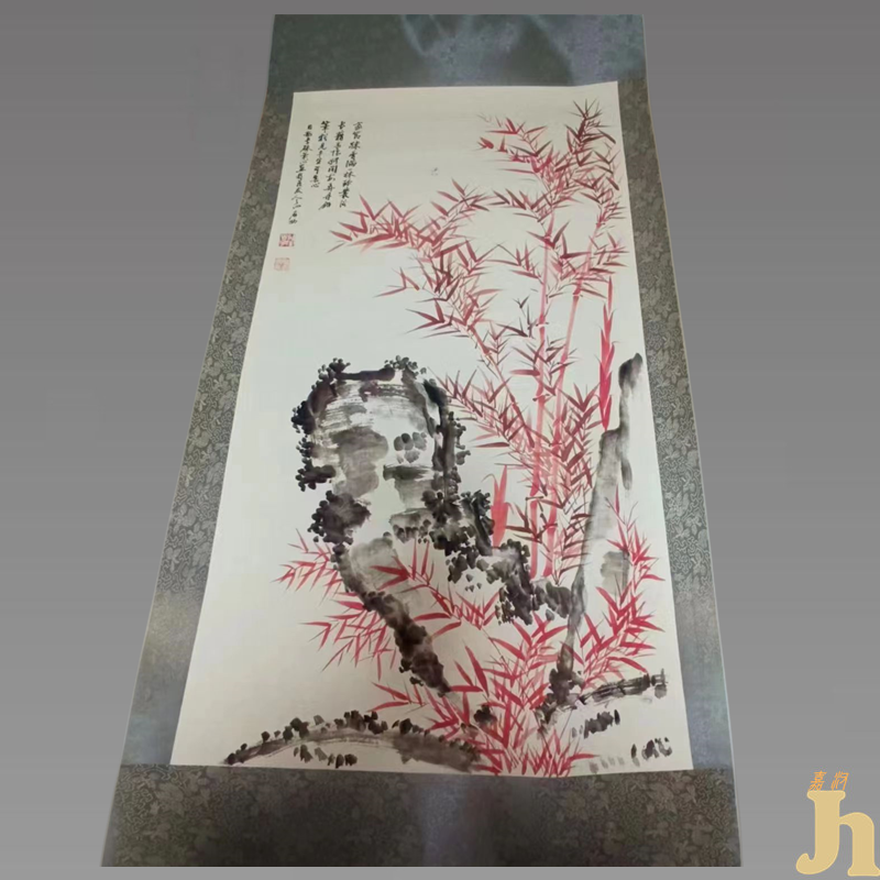 此画用朱砂红撇出竹叶,主杆柔韧,有风扶杨柳的韵致,竹叶的生长多成簇怒张。竹叶笔墨多以侧峰皴擦,红色由笔锋至笔肚变淡。这样画出的竹叶有了空间感的变化。呈现了竹叶在三维方向上的指向。古语说:“玉可碎而不改其白,竹可焚而不毁其节”。此幅作品描绘出竹子面对种种艰难困苦,绝不向环境与艰苦妥协的品格。既表现出作者精湛深厚的绘画功底,又属人文情怀之作!具有一定的收藏价值和文化艺术欣赏价值!