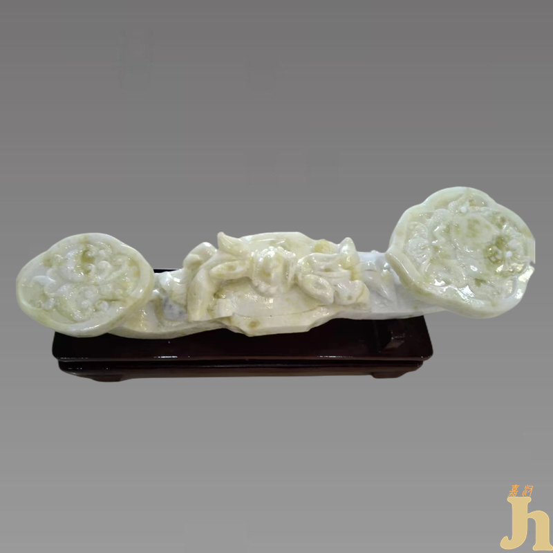此蓝田玉如意细腻温润,质地坚硬。如意自古就深受人们的喜爱。中国人一直是喜爱寓意深刻的玉器,玉如意的出现将玉坚韧不渝的美德与如意的吉祥寓意相结合,成就了具中国特色吉祥文化的如意器物。据有关史料记载,最初的“如意”是由古代的笏和搔仗演变而来,笏又称玉板或朝板,是古代大臣上朝时,拿在手中的长条形器具,可以记录下君王的命令或旨意,也可以把上奏君王的话记在笏板上,以防止遗忘;搔仗,俗称“痒痒挠”,当时人们用它来搔手够不到的痒处,可如人之意,故名“如意”。在古代,“如意”的用途很广泛,战争中可用做指挥之物,寓意万事顺利,吉祥如意。常人远行前,亲朋好友会送上如意,以表良好祝愿等。具有一定的收藏价值和文化艺术欣赏价值!