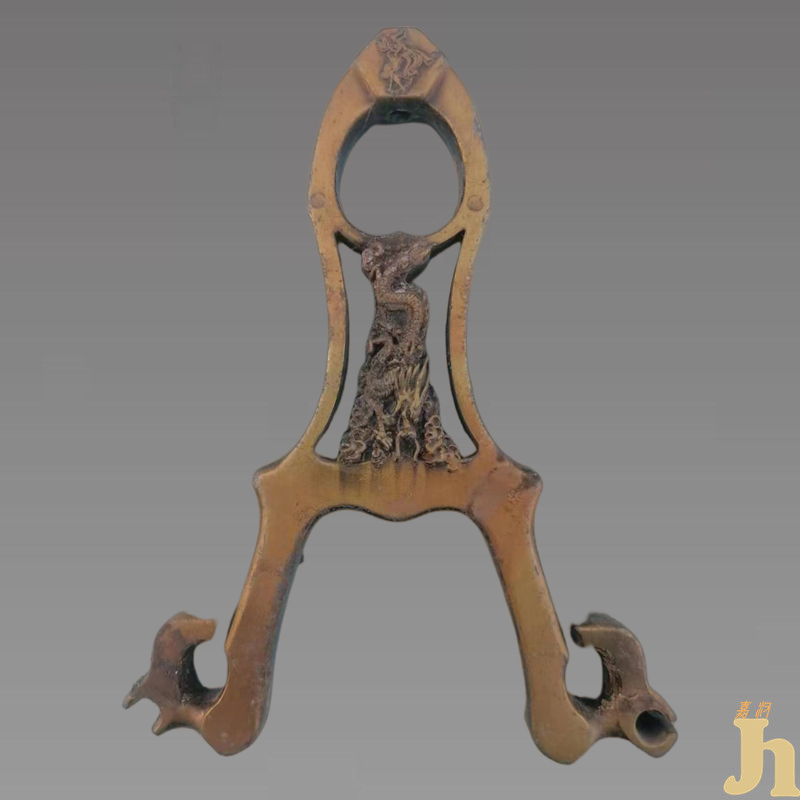此弹弓清代风格明显,在清代,镖师是一种常见却又带着神秘色彩的职业,弹弓是他们行走江湖之必备。镖客们不仅靠弹弓养家立业,也将弹弓的威名和技艺传到了所到之处。其中,河北武氏太极拳就有这么一段与镖客往来互动的传说。弹弓轻便易携带,使用起来也比较方便,此弹弓手握处雕刻龙纹,龙身体态饱满,龙角细长,龙须及发描绘细腻,背脊排列规律,身上布满细密的鳞片,鳞片上填色均匀,真可谓独具匠心。具有一定的收藏价值和文化艺术欣赏价值!