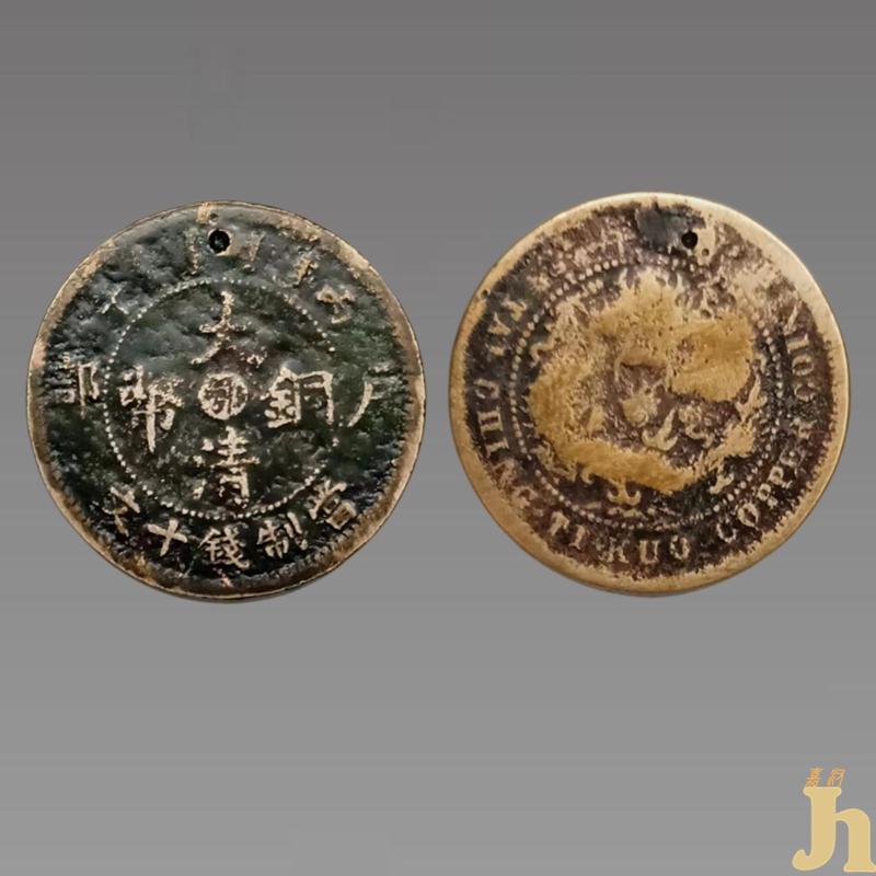 清代机制币的铸造始于1900年(清光绪二十六年),止于1911年(宣统三年),流通时间较短。因其版面设计优雅,雕刻精良,且存世量极为稀少,大清铜币光绪年户部造当十被誉为中国近代制币中的十大名誉品之一。
